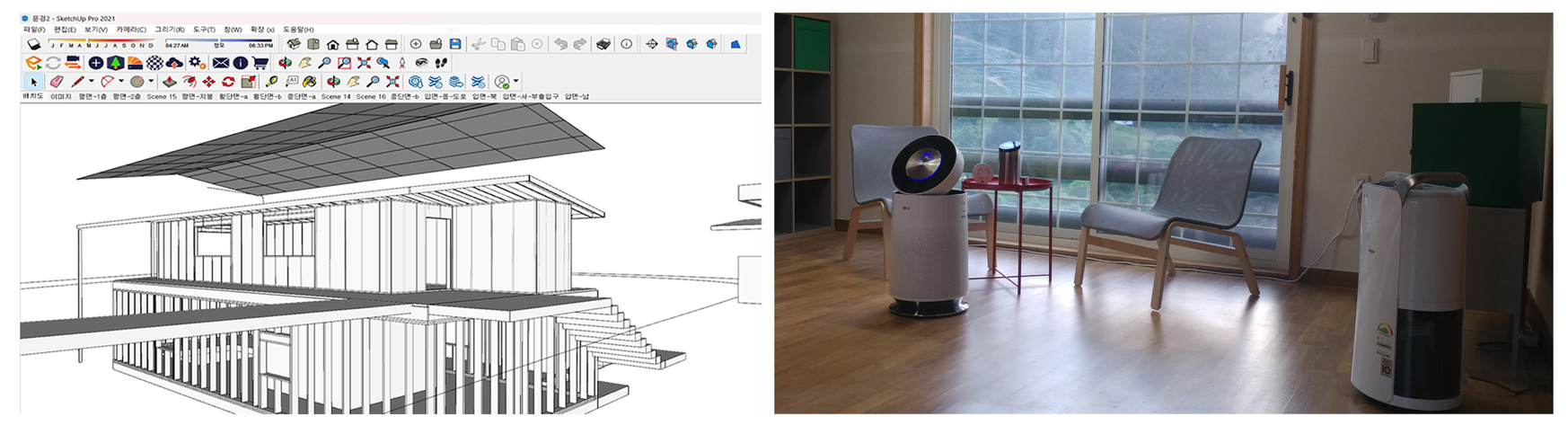 The final result differed significantly from the initial design plan due to on-site conditions and work delays. The floor area decreased, and the purpose of usage changed. Therefore, we installed all purchased IoT devices and sensors inside the building constructed adjacent to ours last semester and verified their operation.
